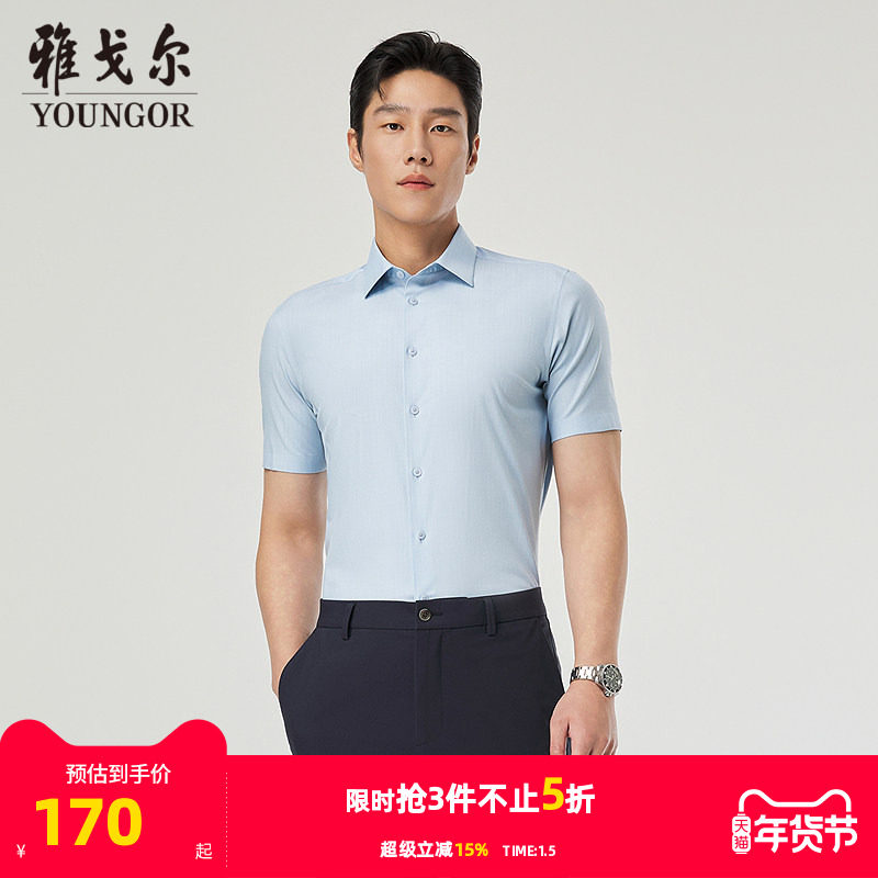 【凉感防晒】雅戈尔夏季新品条纹宾霸商务休闲易打理短袖衬衫男