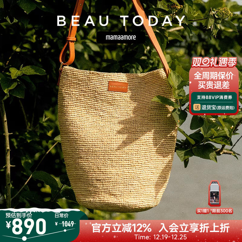 【mamaamore明星同款】编织包包菜篮子水桶包女手提包草编度假包