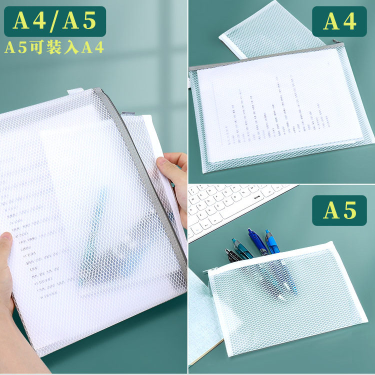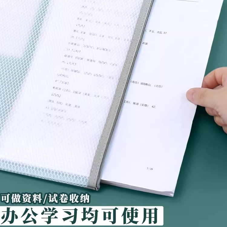 网格文件袋加厚透明网格拉链袋A4试卷收纳袋学生用考试文具袋防水笔袋办公用品批发公文档案袋资料袋包邮