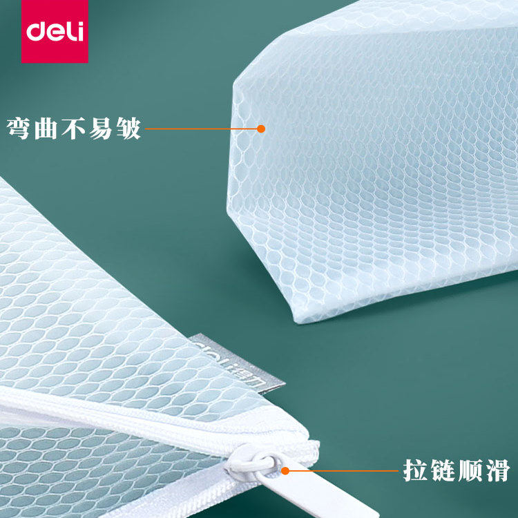 得力雾透文件袋防水拉链式大容量加厚收纳袋学生考试文具袋A4书袋63455六角网状文具收纳袋试卷透明考试袋