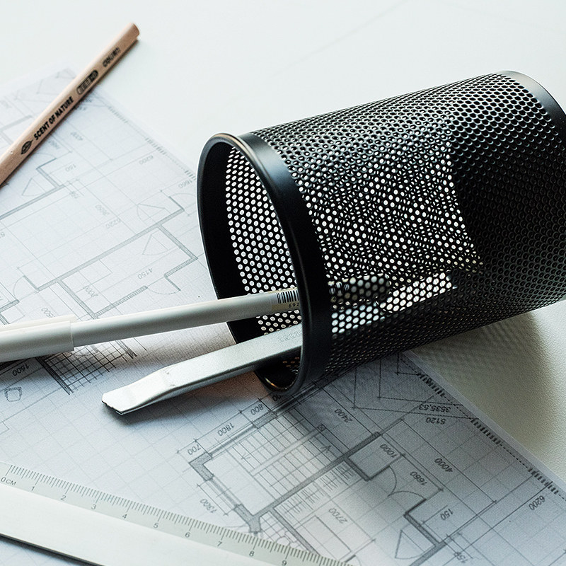 得力金属圆形网状笔筒时尚学生文具桌面办公用品909金属网纹笔筒