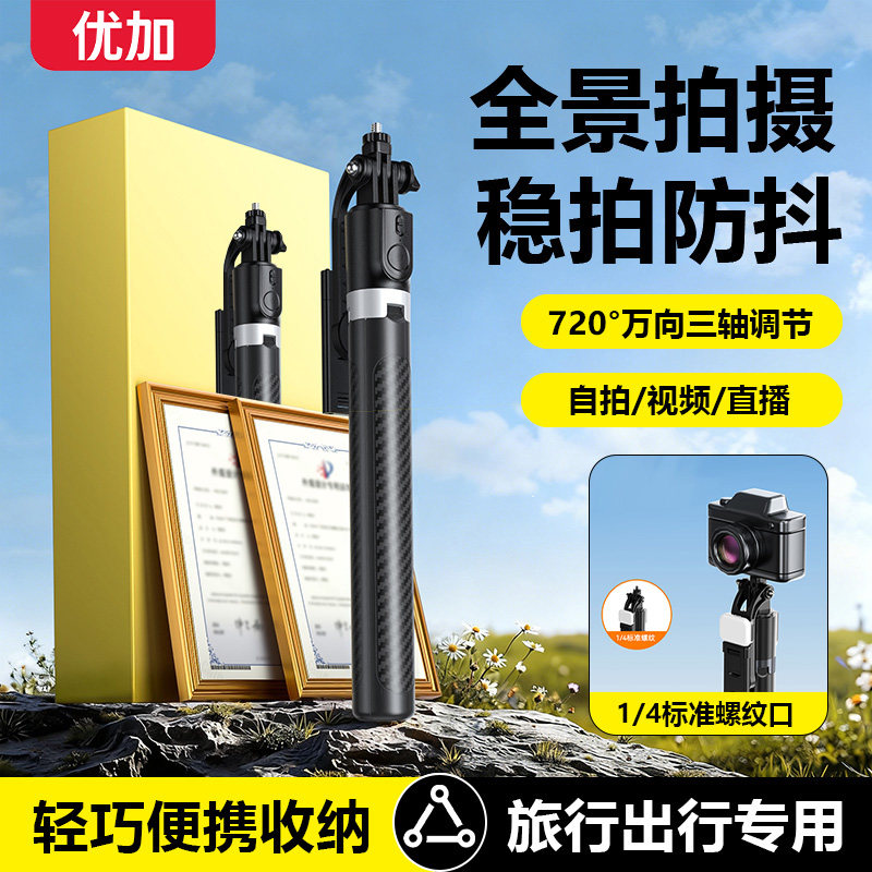 2026新款自拍杆落地三脚架手机支架拍照直播自拍神器360度旋转拍摄旅游便携演唱带四分之一螺母防抖蓝牙架