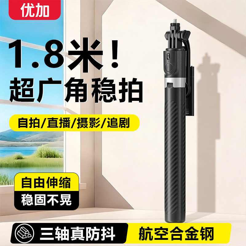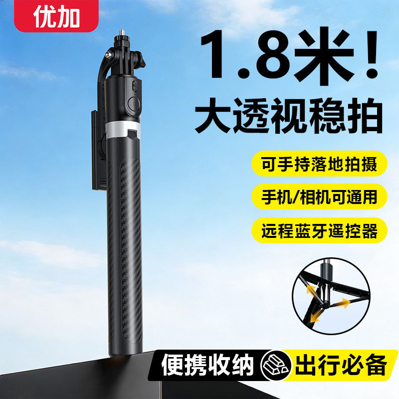 佑粒新款1.8m自拍杆防抖落地三脚架手机相机通用旅游便携手持伸缩支架拍照摄影自拍神器蓝牙远程双机位