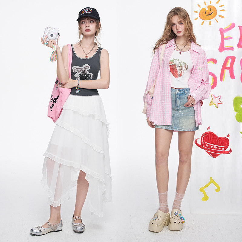 妖精的口袋草莓印花修身吊带女2025年夏季新款休闲甜美设计感背心