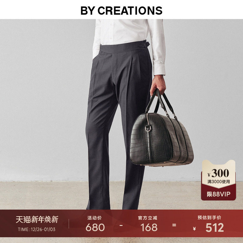 高支纯澳洲羊毛深灰商务廓尔格西裤男高腰双褶正装职业上班便裤子