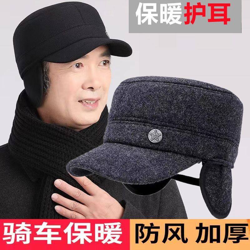 防风防寒帽子男士冬季中老年人保暖鸭舌帽加厚爸爸护耳老头平顶帽