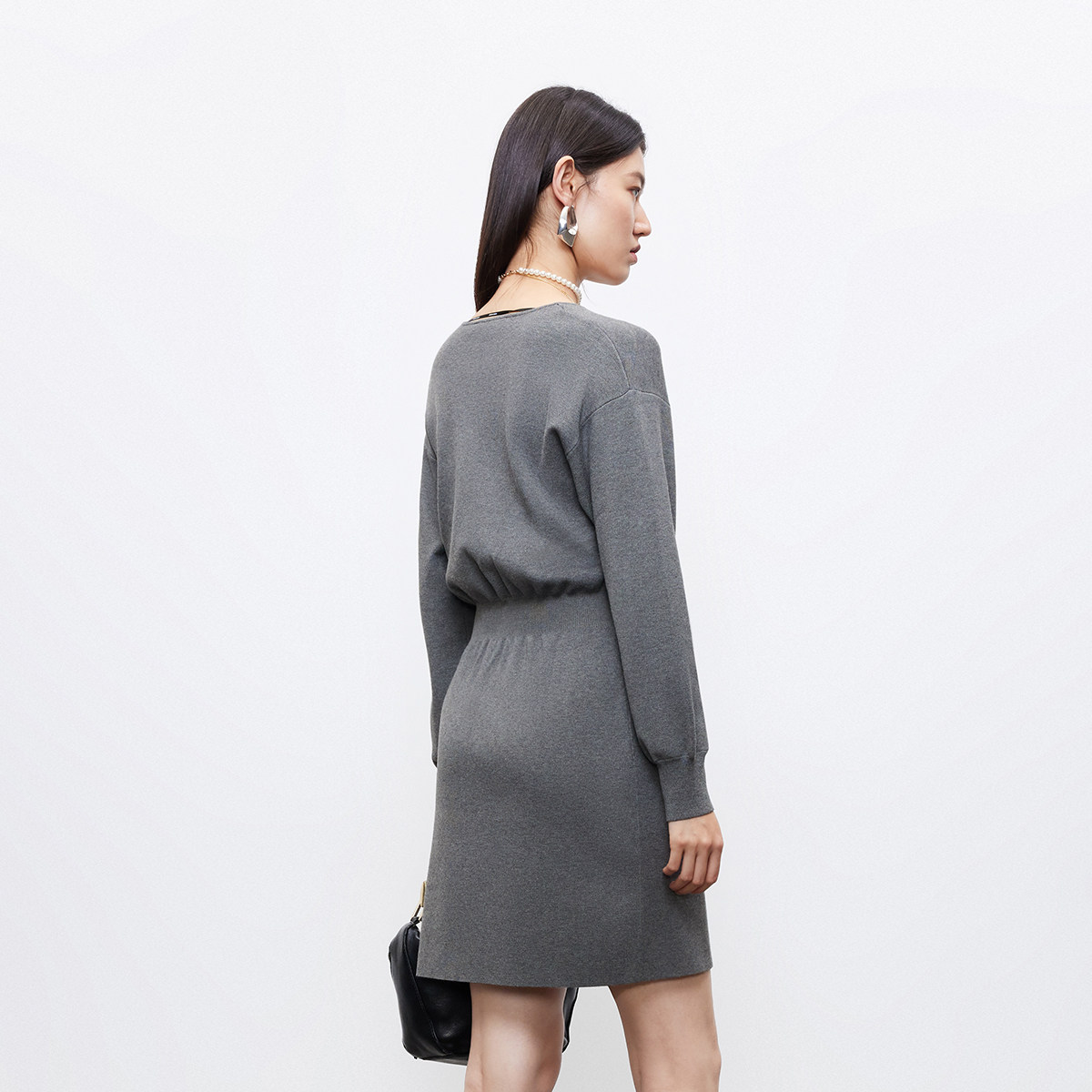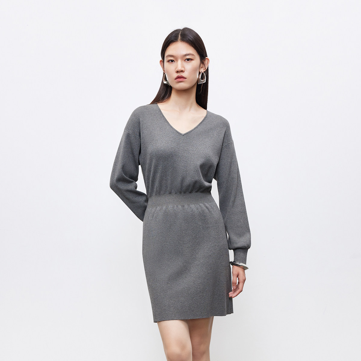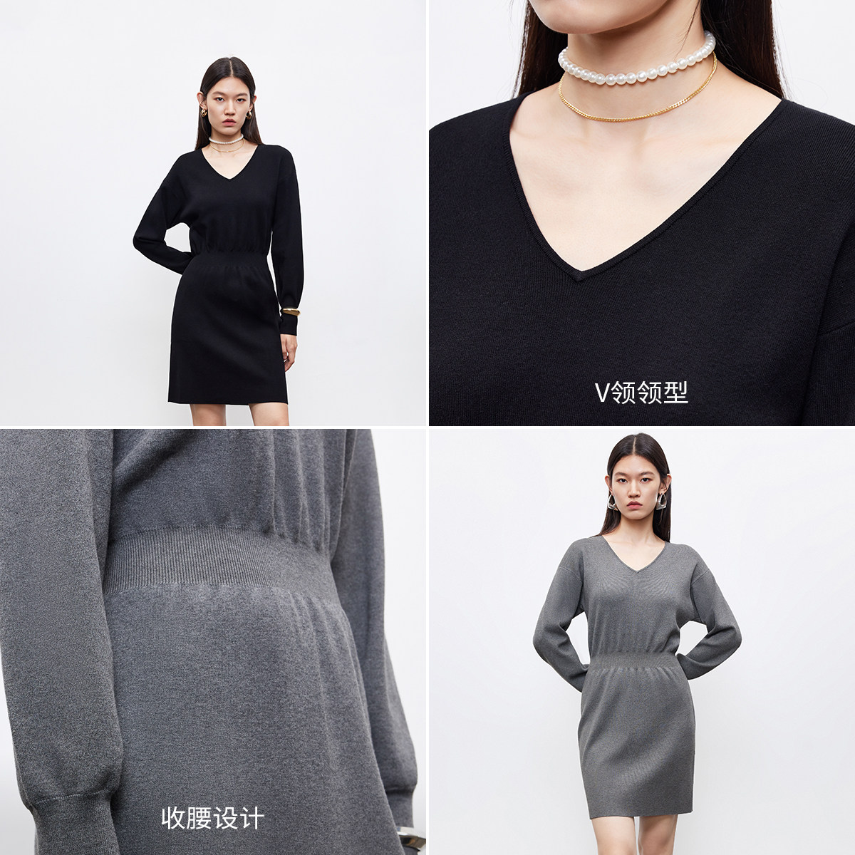 Vero Moda连衣裙2025秋季新款V领纯色收腰显瘦针织裙325346014