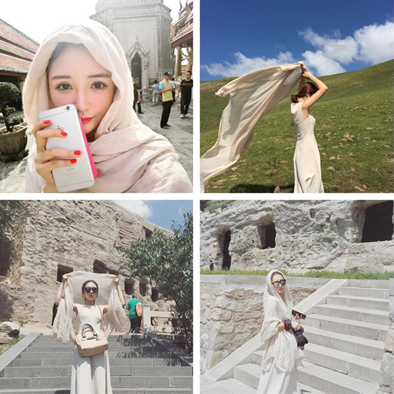 纯色棉麻披肩外搭女2025新款民族风夏季薄款丝巾敦煌旅游拍照头巾