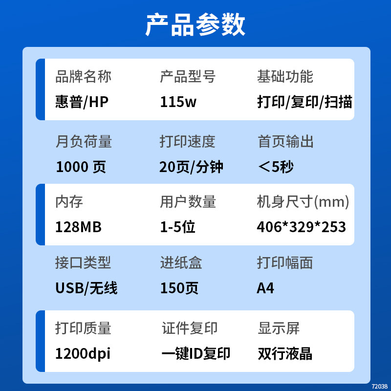 惠普115W黑白激光打印机HP102W 105W家用无线打印机116W办公复印