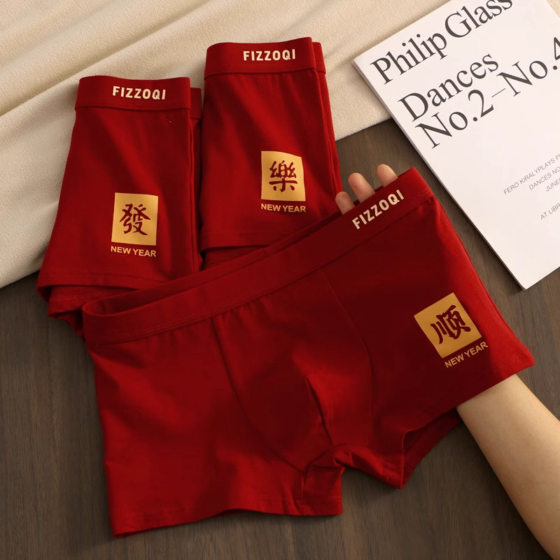 本命年红色男士内裤男款纯棉马年红裤衩结婚四角短裤青少年平角裤