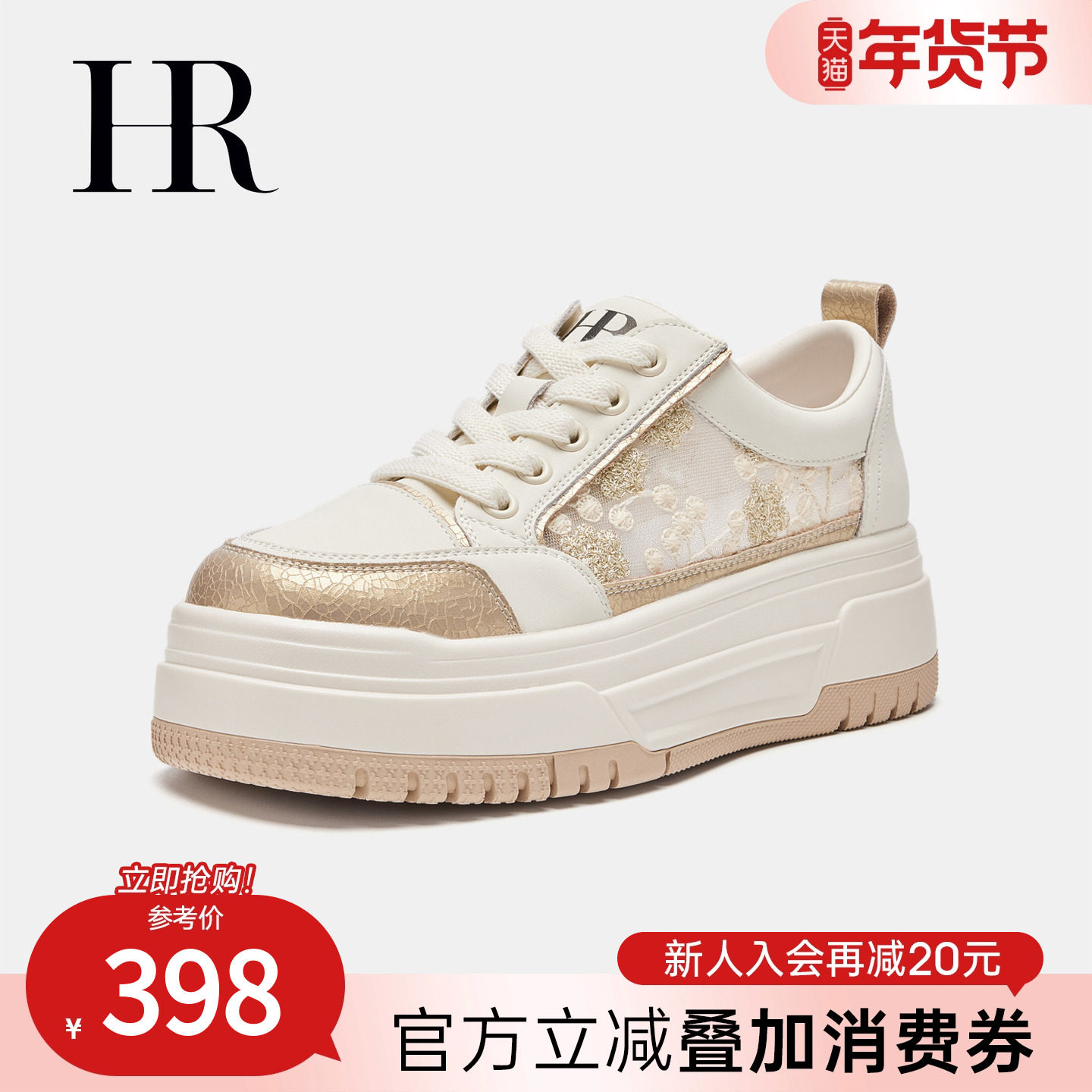 HR赫莲娜板鞋2026夏季新款网面女鞋子厚底国风刺绣网纱透气运动鞋