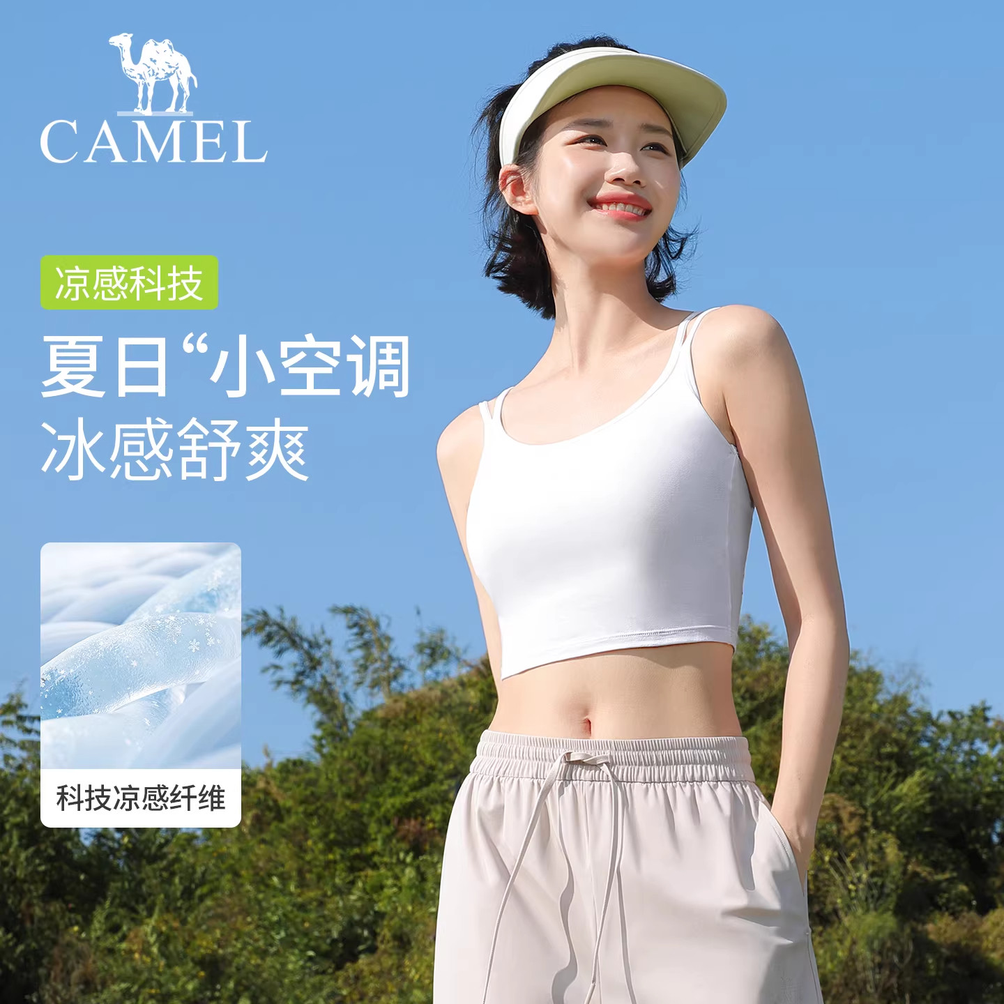 骆驼瑜伽背心女春季防晒户外训练健身内衣透气速干带胸垫运动背心