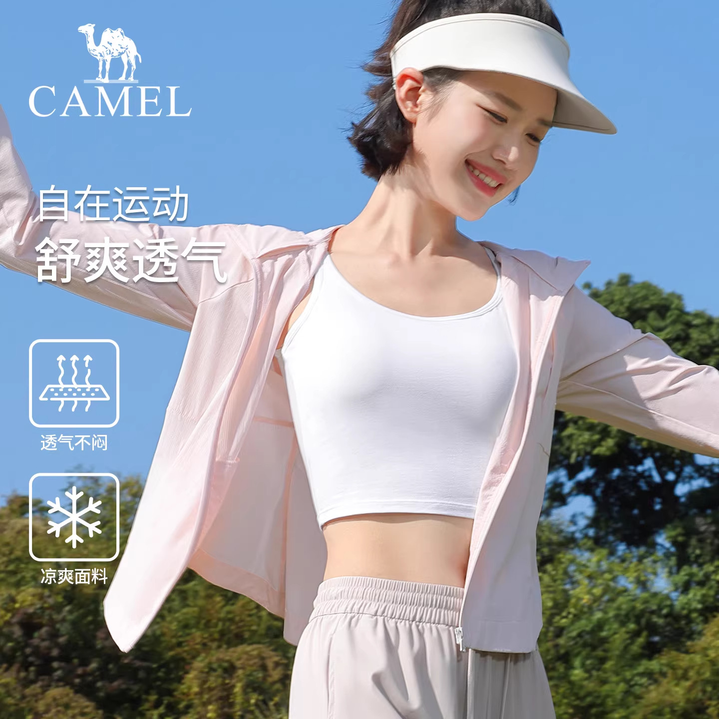 [骆驼薄荷T]速干T恤女26春户外长袖立领打底衫凉感透气防晒上衣男