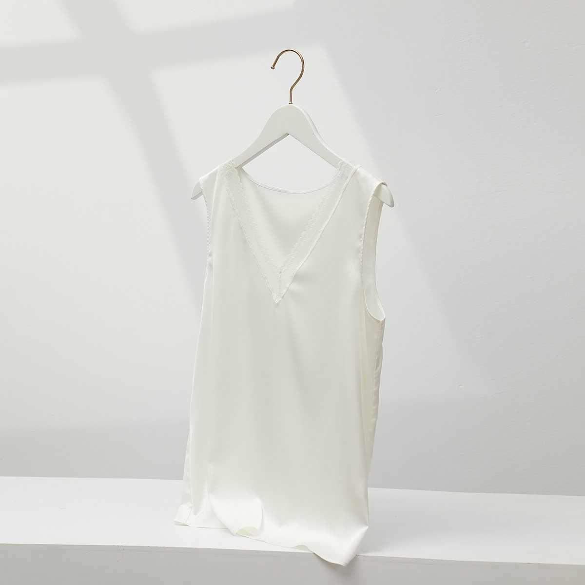 安莉芳春时尚薄款蕾丝深V打底背心女士无袖雪纺家居上衣ED00298