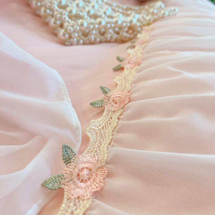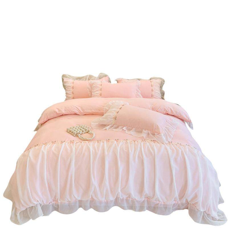 轻奢法式雪纺边四件套水洗棉仙女床盖款床上用品纯色床单被套
