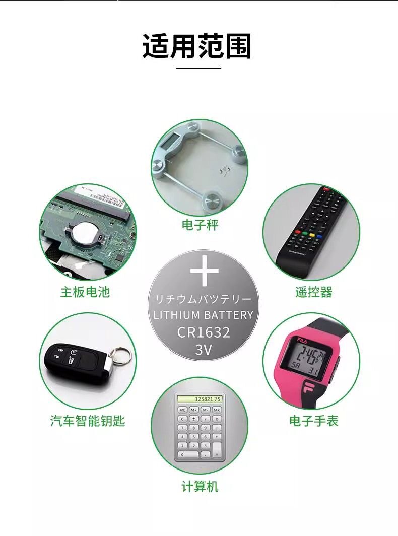 纽扣电池cr1632自拍杆蓝牙遥控器汽车钥匙3V胎压防盗器体重秤电池