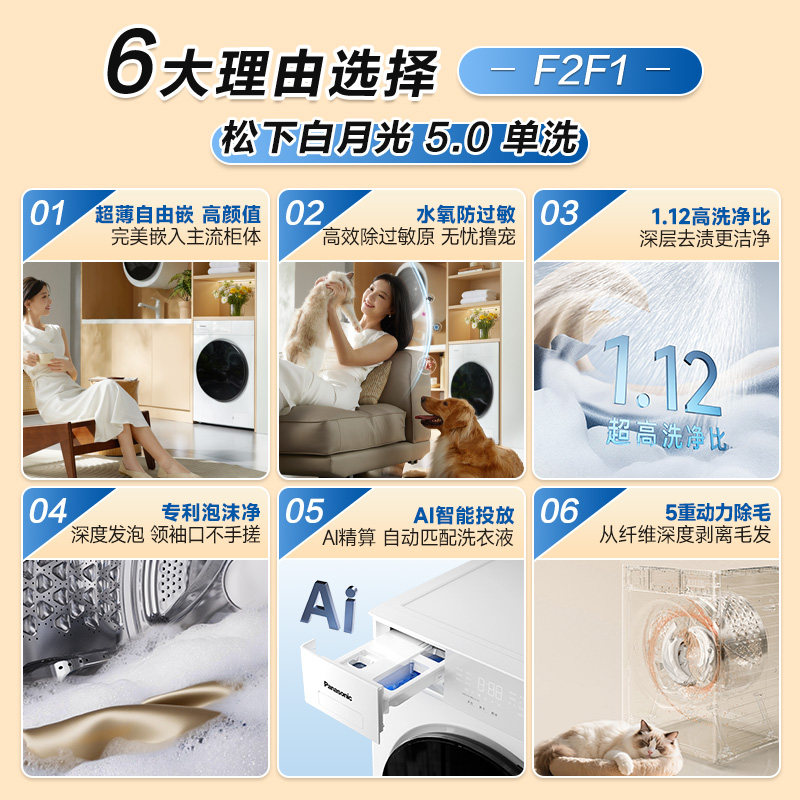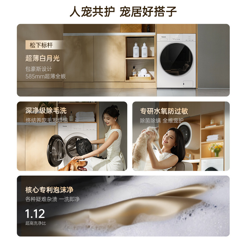 [白月光5.0]松下家用全自动滚筒洗衣机10KG大容量F2F1官方旗舰