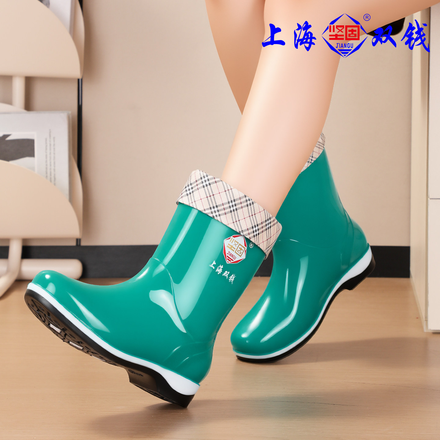 低帮棉双钱女水鞋速干胶鞋短套雨鞋保暖时尚防水防滑成人耐磨大底