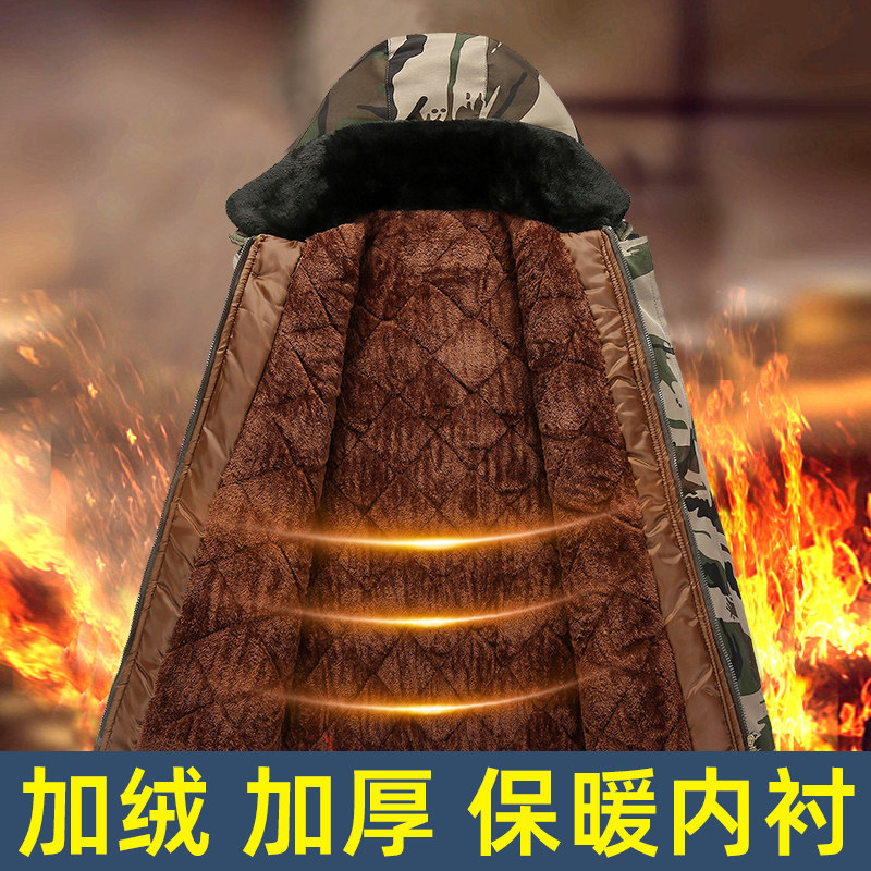 军大衣冬季加绒加厚迷彩棉服男款棉衣外套劳保棉袄冷库防寒工作服