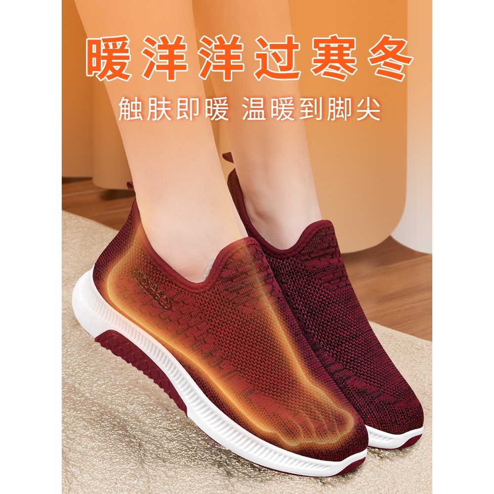 啄木鸟老北京棉鞋女冬季加绒加厚保暖妈妈鞋中老年软底防滑一脚蹬