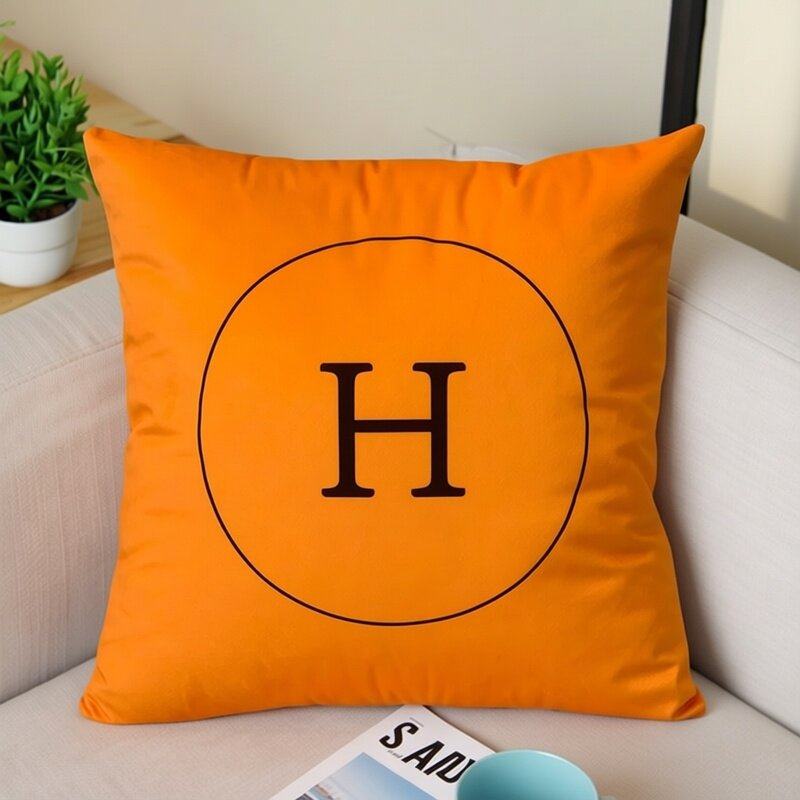 橙色抱枕沙发客厅轻奢暖色软装靠垫几何毛绒橘色护腰靠枕套不含芯