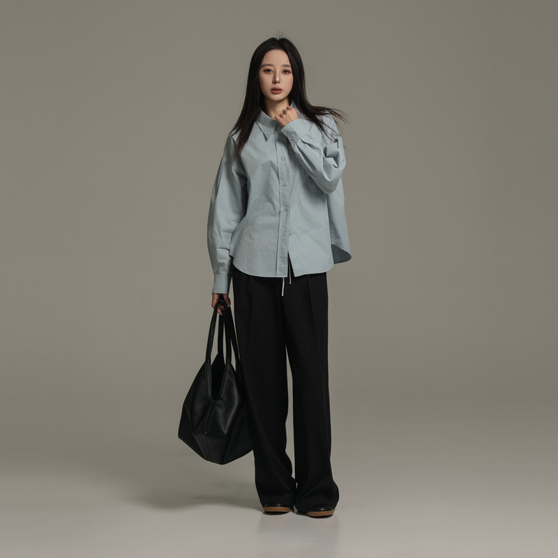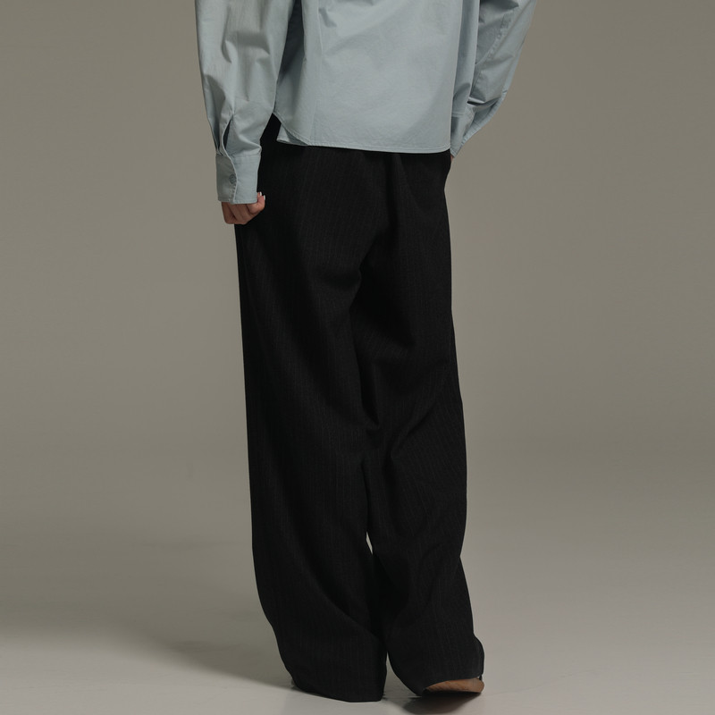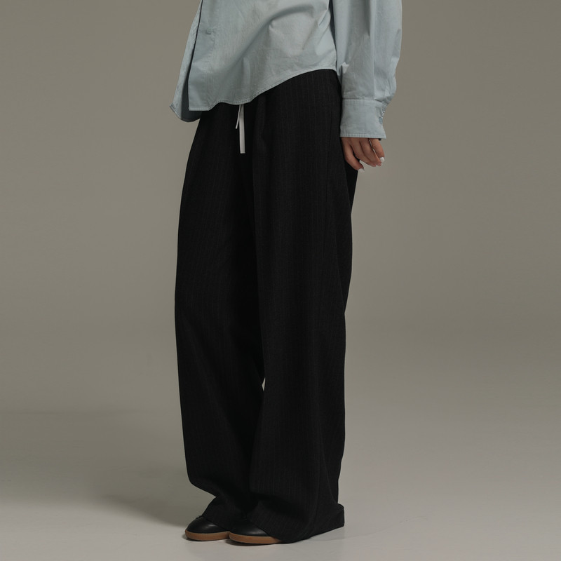 AIRIQI冬季新款休闲通勤拼接松紧腰系带直筒西装裤长裤AI44CK377