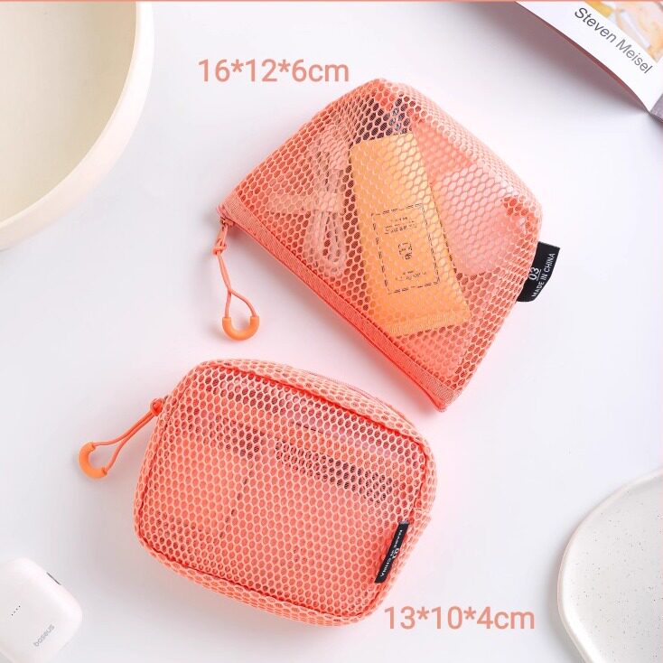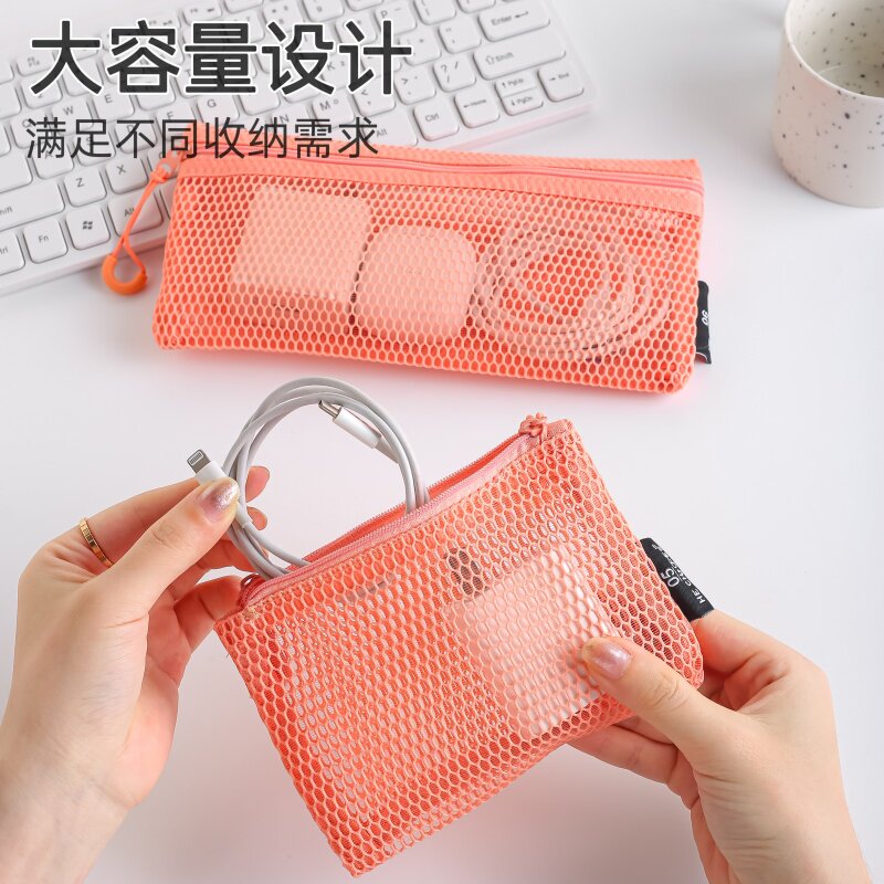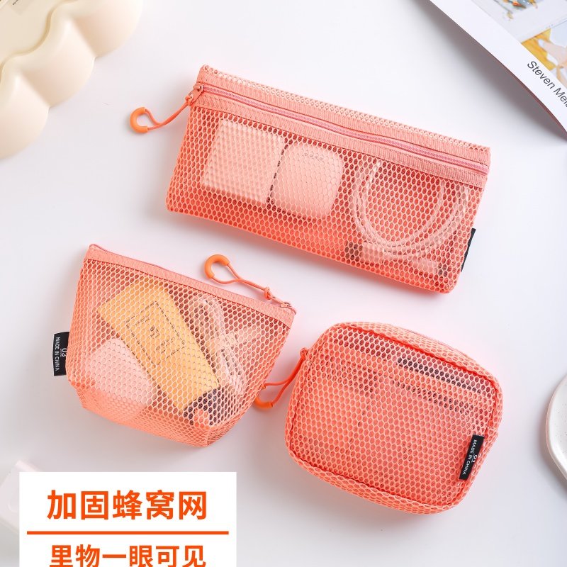 橙力满满2026新款立体收纳包蜂窝网格大容量耳机包女户外便携数码零钱包手机充电器数据线充电宝收纳袋化妆包