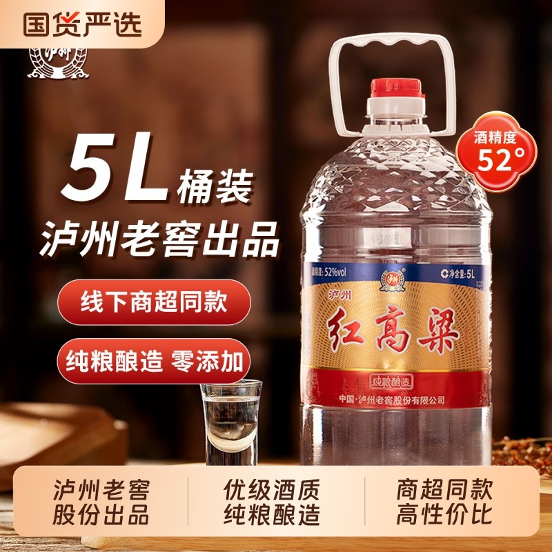 泸州老窖红高粱52度5L浓香型白酒 纯粮食酿造 散装桶装口粮酒