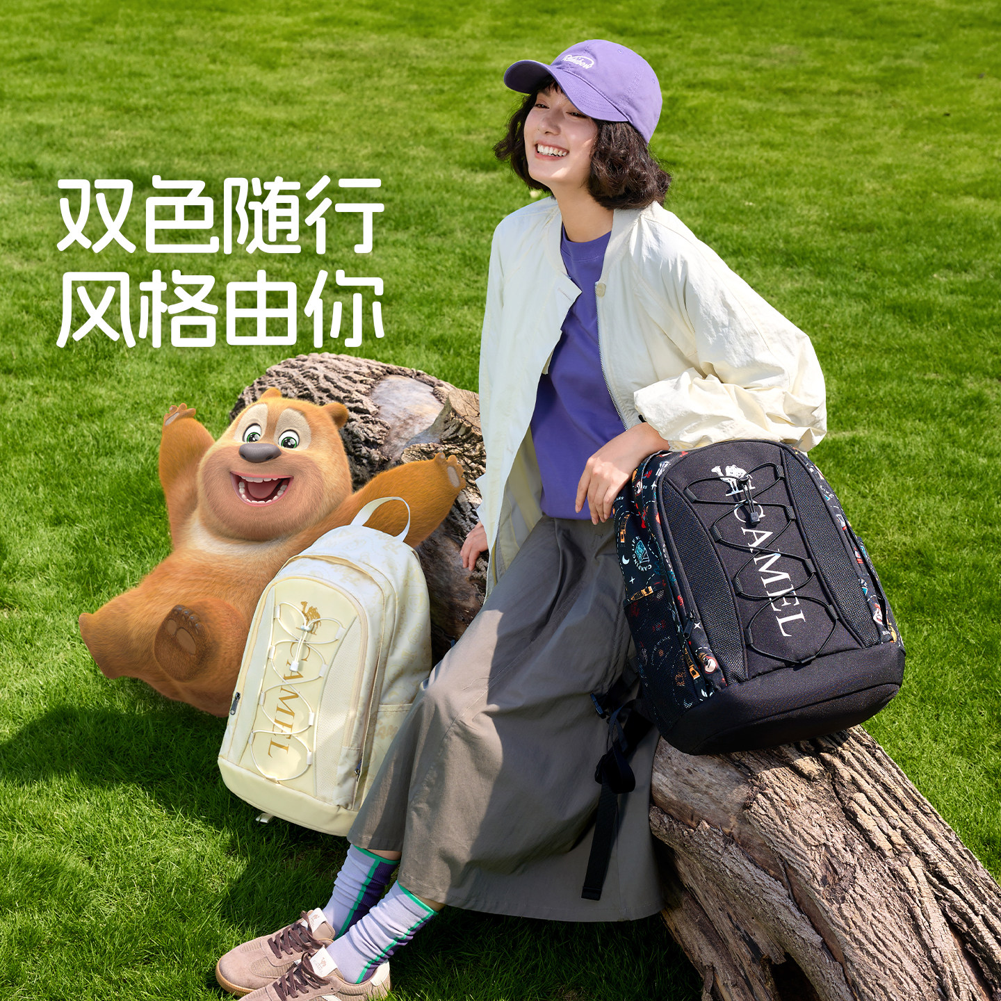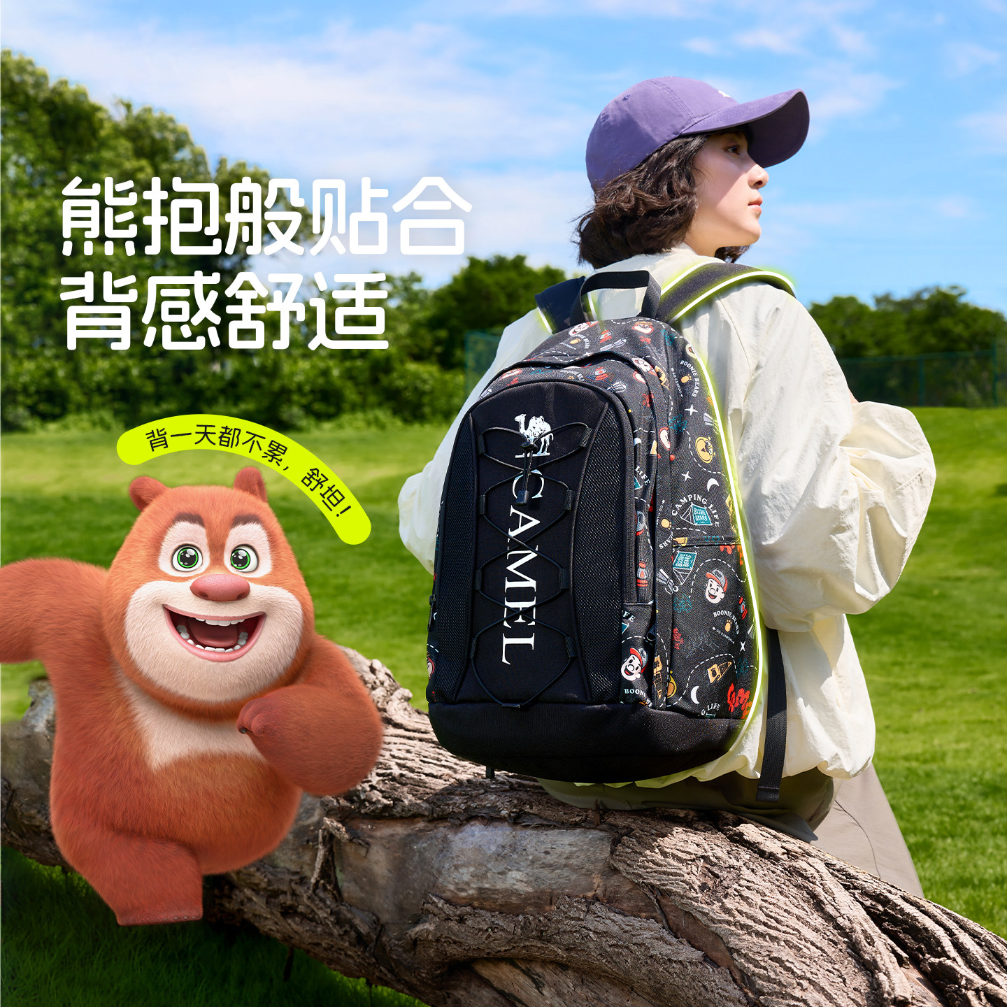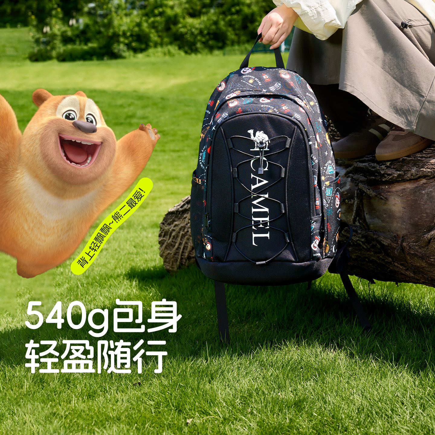 【熊出没联名】骆驼熊抱休闲书包双肩包大容量户外背包徒步登山包