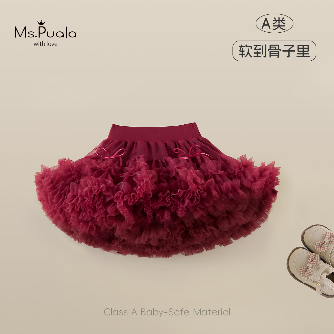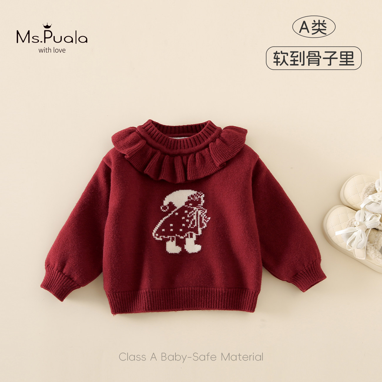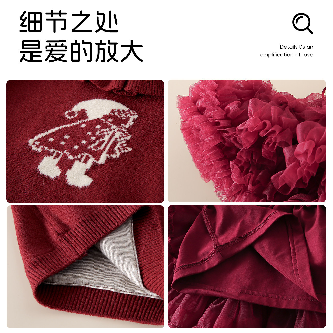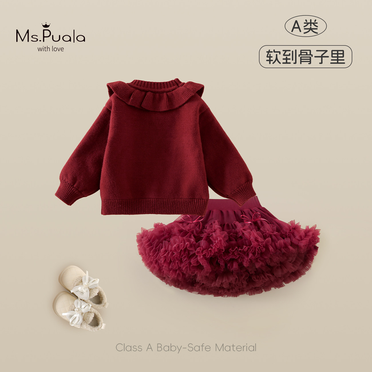 Ms.Puala女童年服套装红色针织衫毛衣红色蓬蓬短裙拜年服两件套