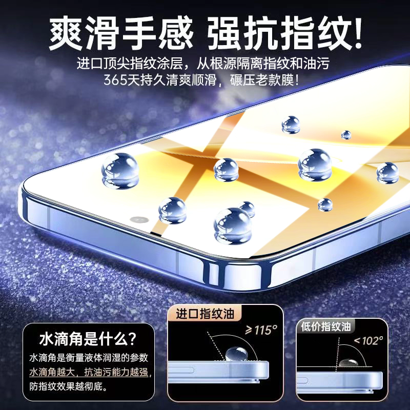 [不沾指纹]适用iPhone17/16钢化膜苹果15/14手机13promax防窥12全屏XR/xsmax全包11贴X防摔8por高清plus