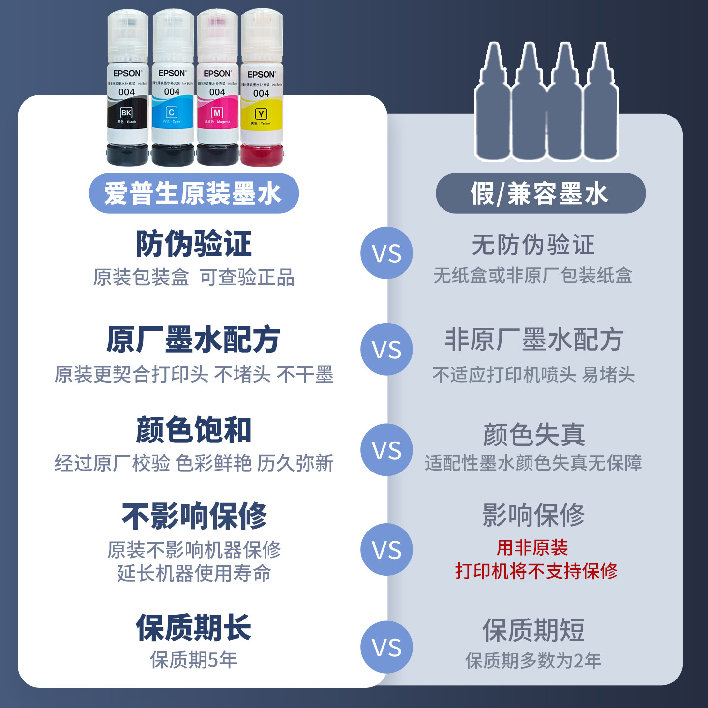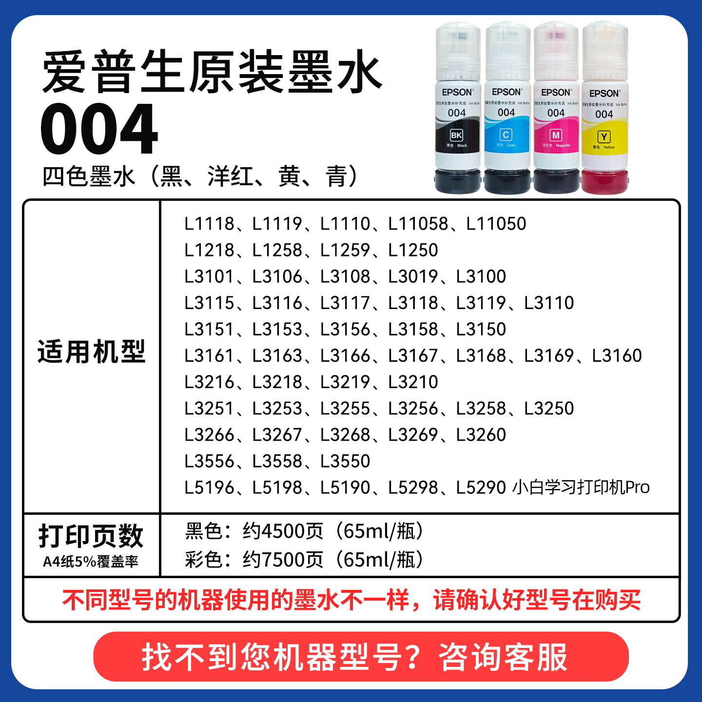 EPSON爱普生004原装墨水 L3151 L3153 L3156 L3158 L3251 L3253 L3255 L3256 L3258喷墨彩色爱普生打印机墨水