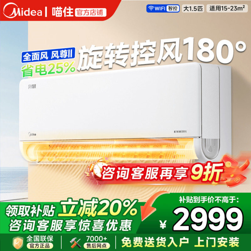 美的风尊二代PRO空调1.5匹2P挂机一级能效变频冷暖家用官方旗舰店