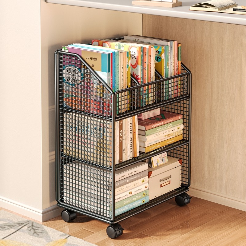 书架收纳架书桌下多层小书柜桌边简易带轮可移动小推车落地办公桌