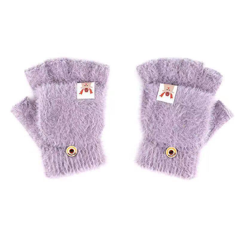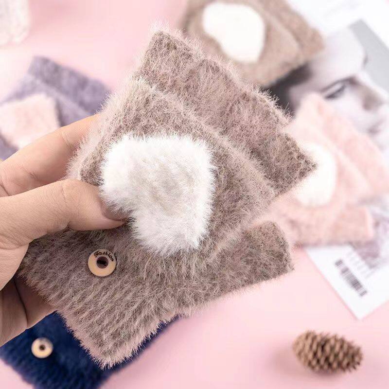 mikko联名可爱卡通猫咪毛绒手套女冬季翻盖半指触屏加厚骑行保暖
