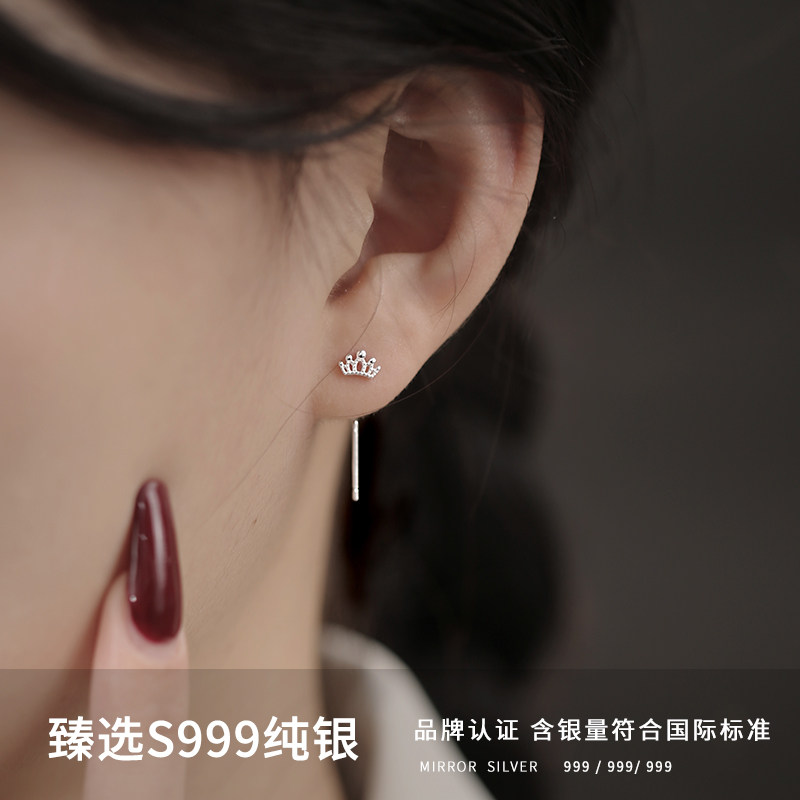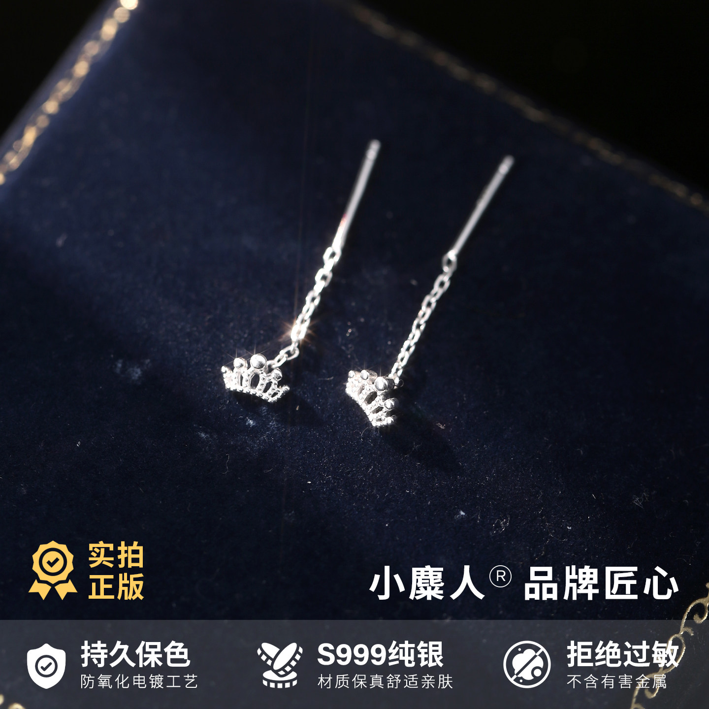 小麋人999纯银皇冠耳线女耳钉耳环耳饰配饰个性简约小众爆款足银
