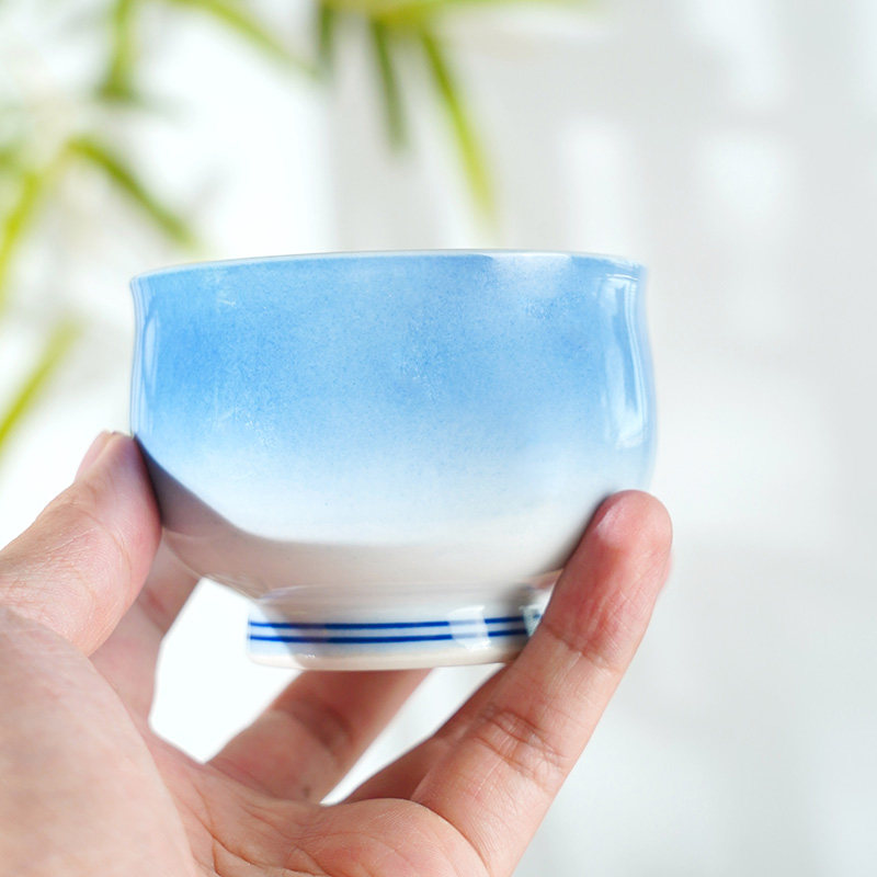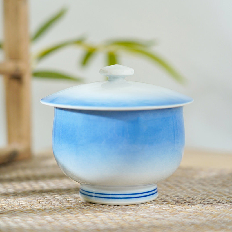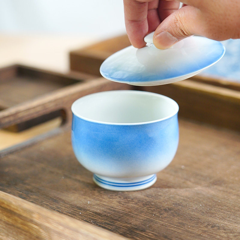 美浓烧有田烧锦地七宝茶带盖陶瓷功夫茶杯釉下彩唐草高档个人专用