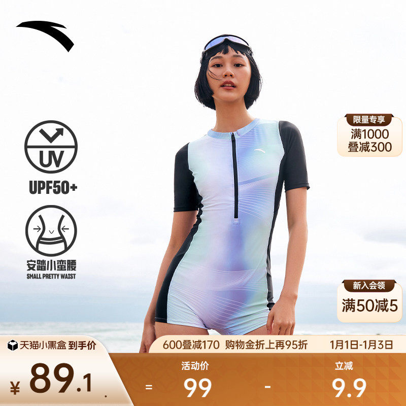 安踏小蛮腰丨女子平角连体泳装修身防晒海边弹力泳衣新款官方正品