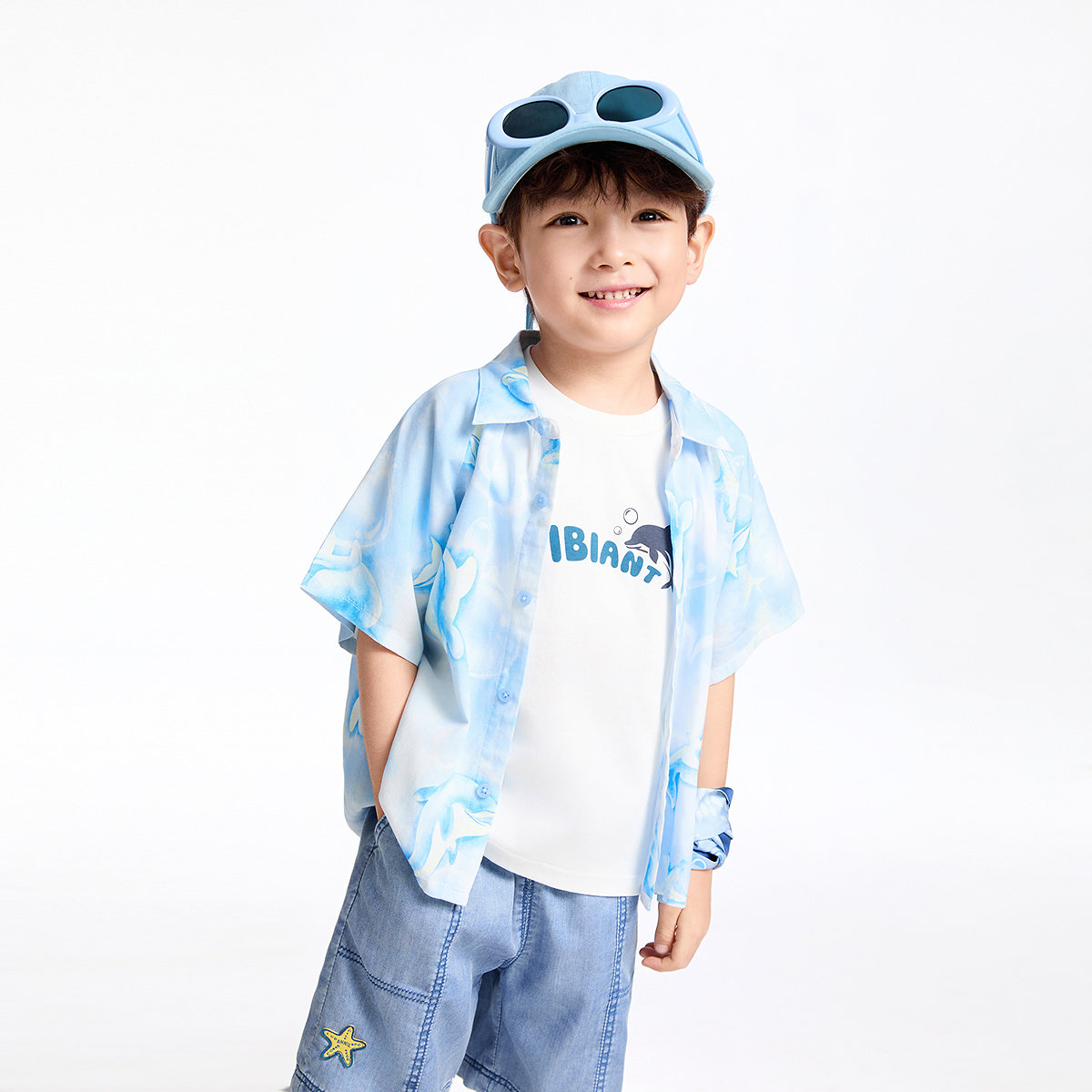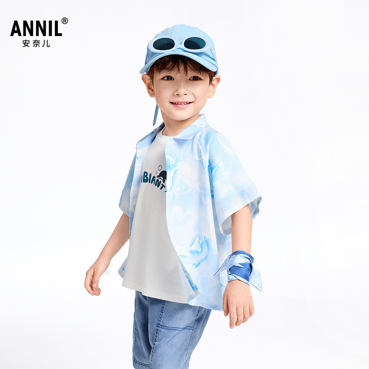 【商场同款】安奈儿童装男童翻领短袖衬衫夏新款透气XB521617