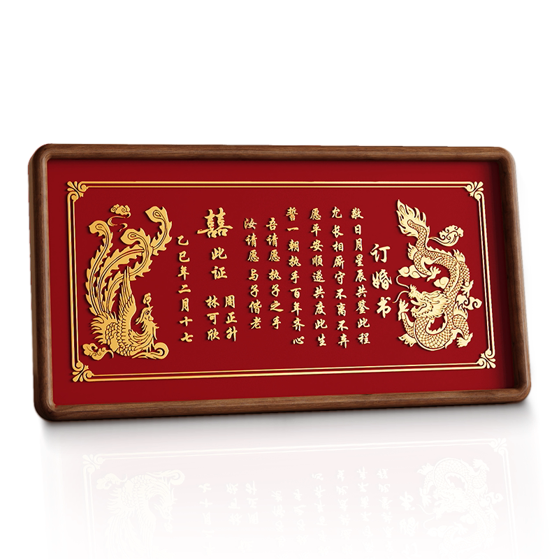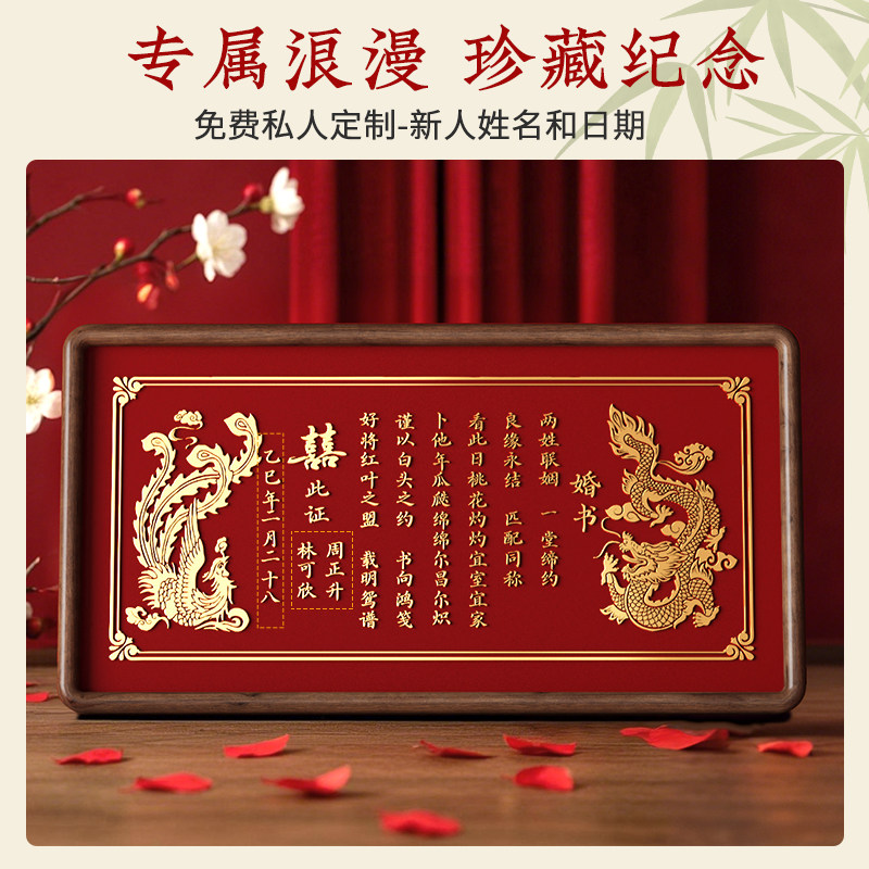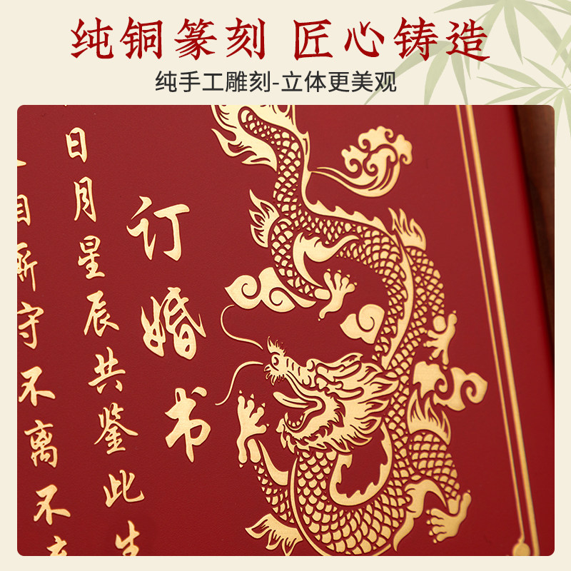 婚书订婚书铜制相框摆台铜雕铜板结婚场景布置摆件订婚宴送日子