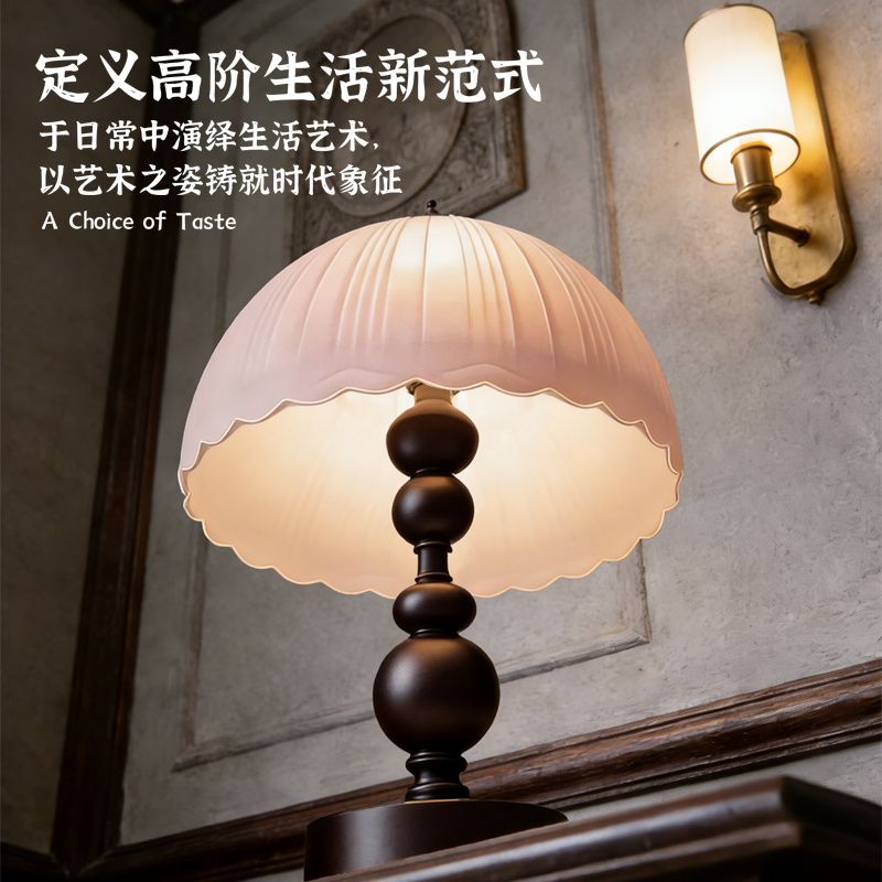 中古侘寂风台灯美式复古卧室床头灯温馨美法式装饰小夜灯客厅语音