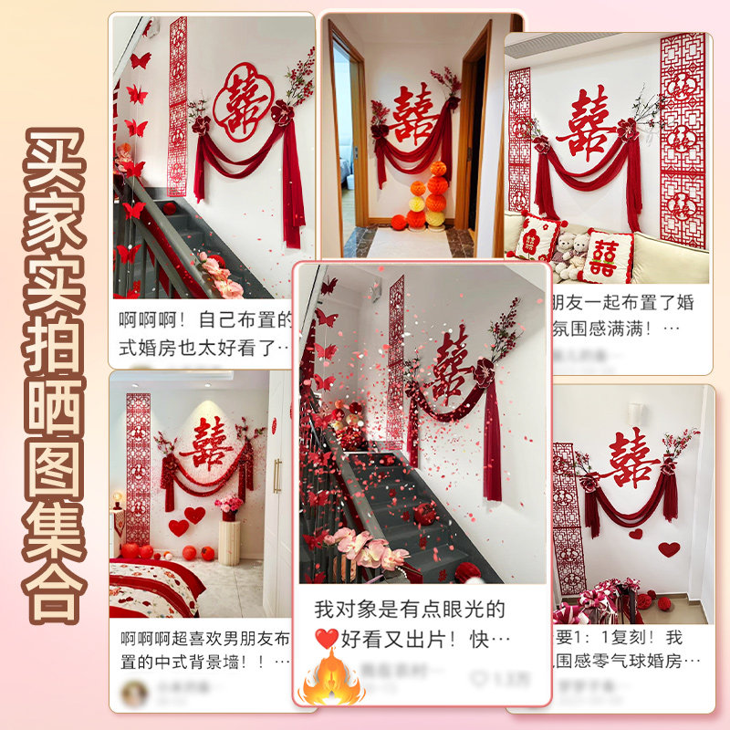 结婚喜字沙发背景墙装饰挂饰男女方客厅布置套装卧室床头楼梯窗帘