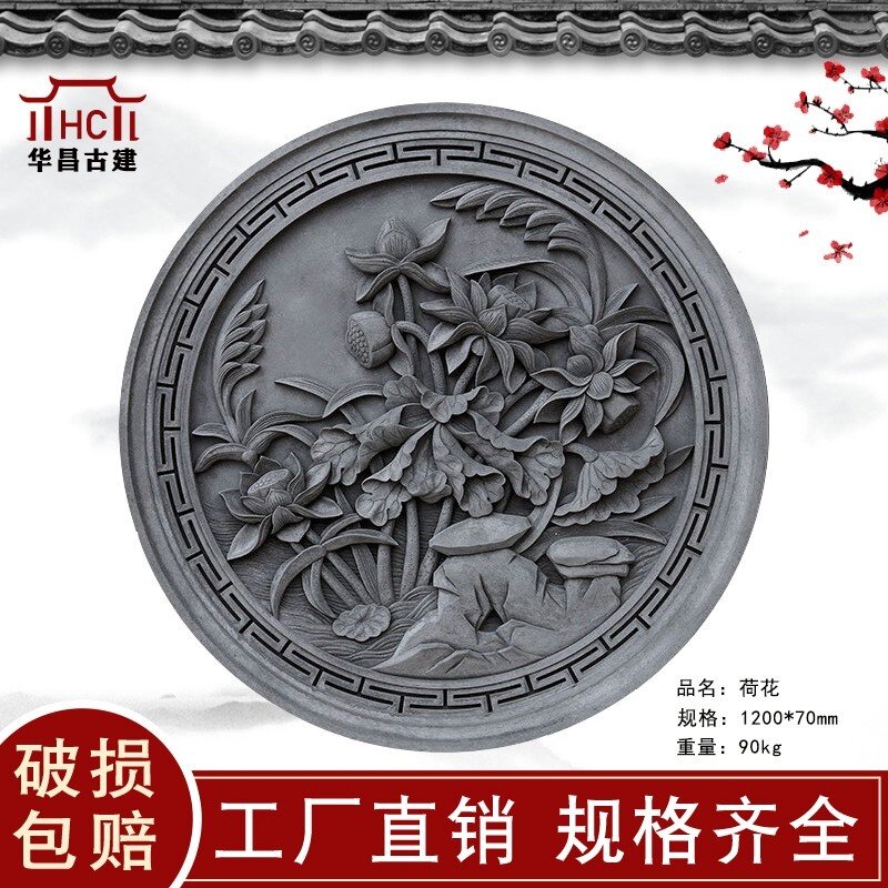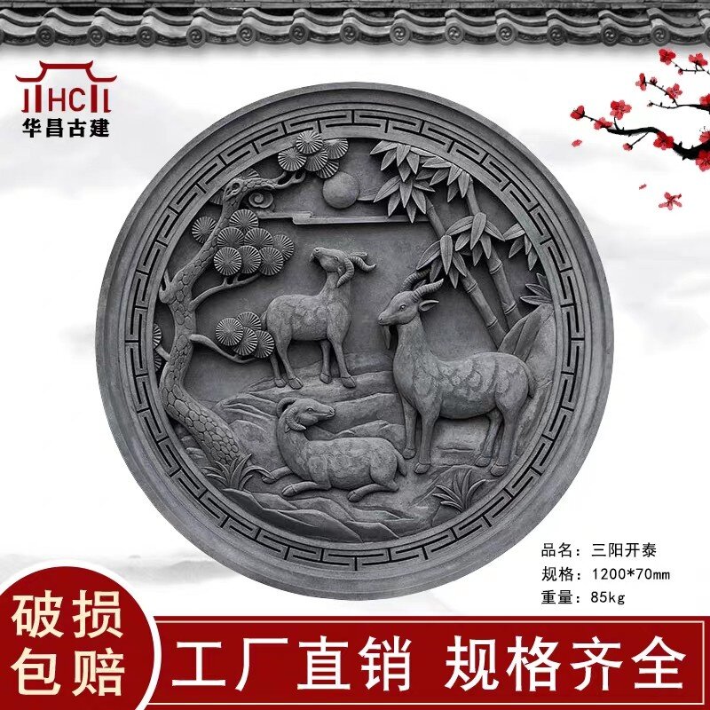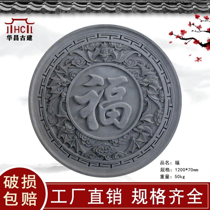 五福砖雕1米2圆形 中式仿古装饰影壁背景墙四合院挂件徽派建筑