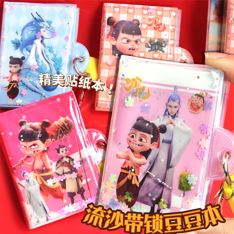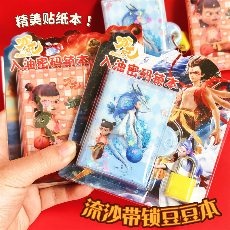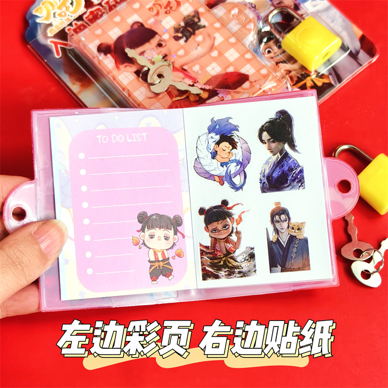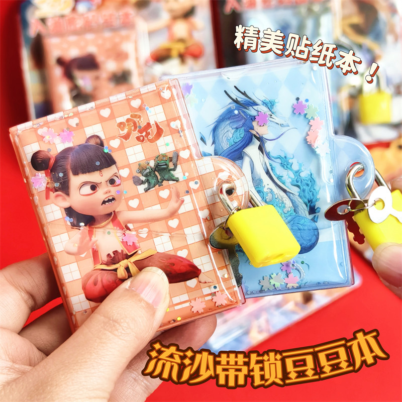 哪吒流沙豆豆贴纸本卡通迷你口袋笔记本便携带锁彩页日记本小礼物