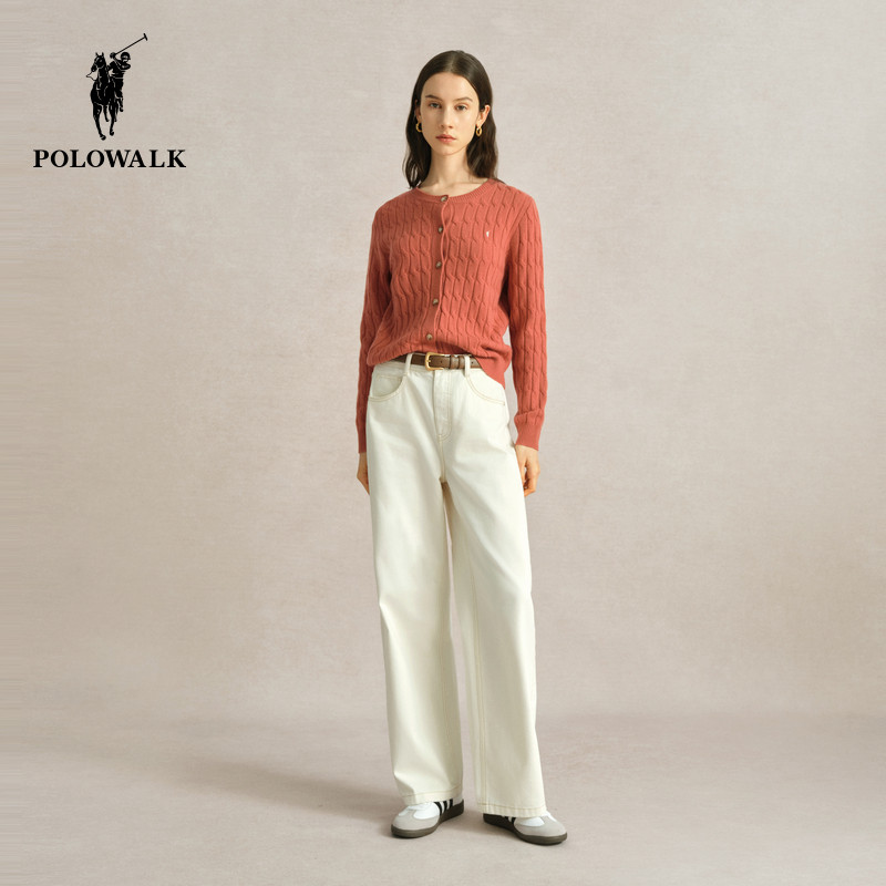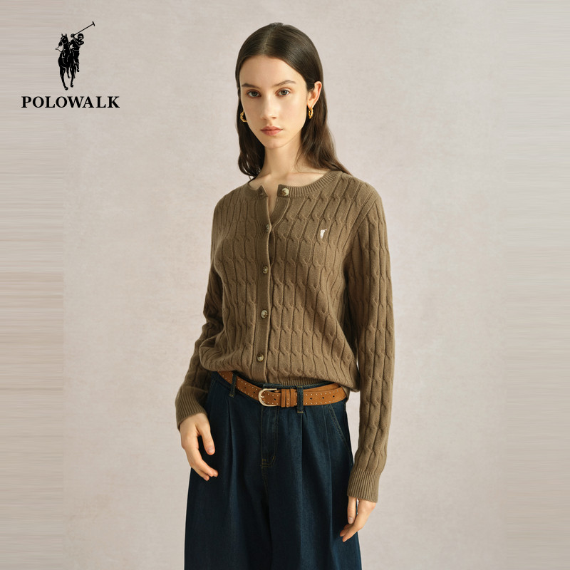 【特惠】POLOWALK女士羊毛衫红毛衣秋冬圆领纯色薄款开衫内搭