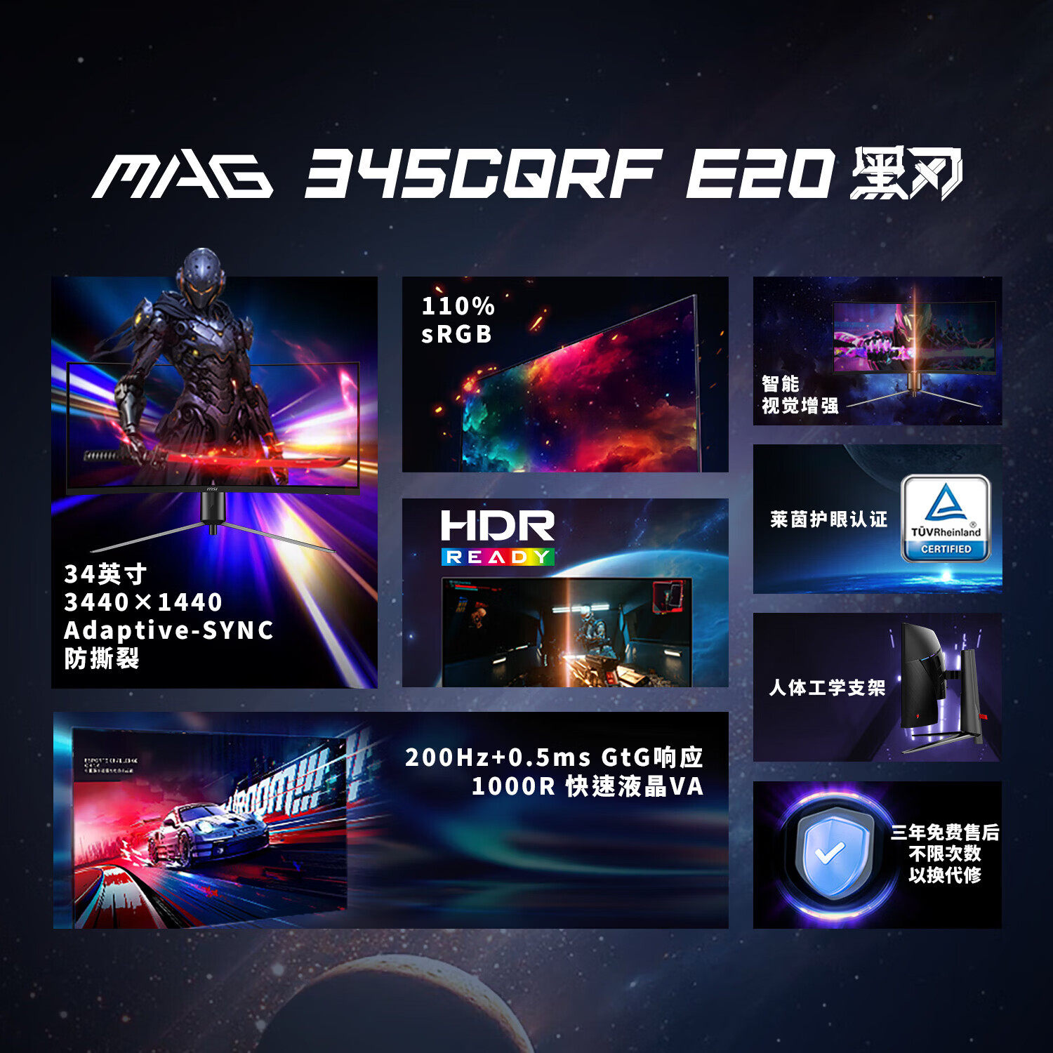 微星(MSIMAG345CQRF 34英寸准4K200Hz1000R曲率游戏电竞显示器屏