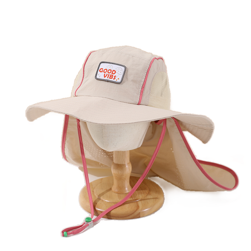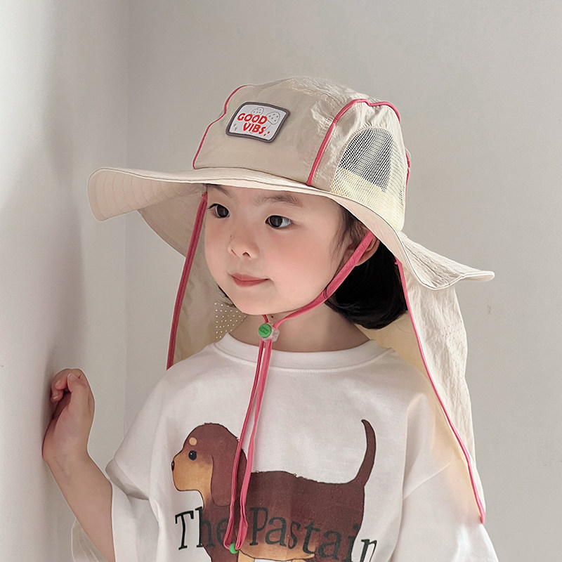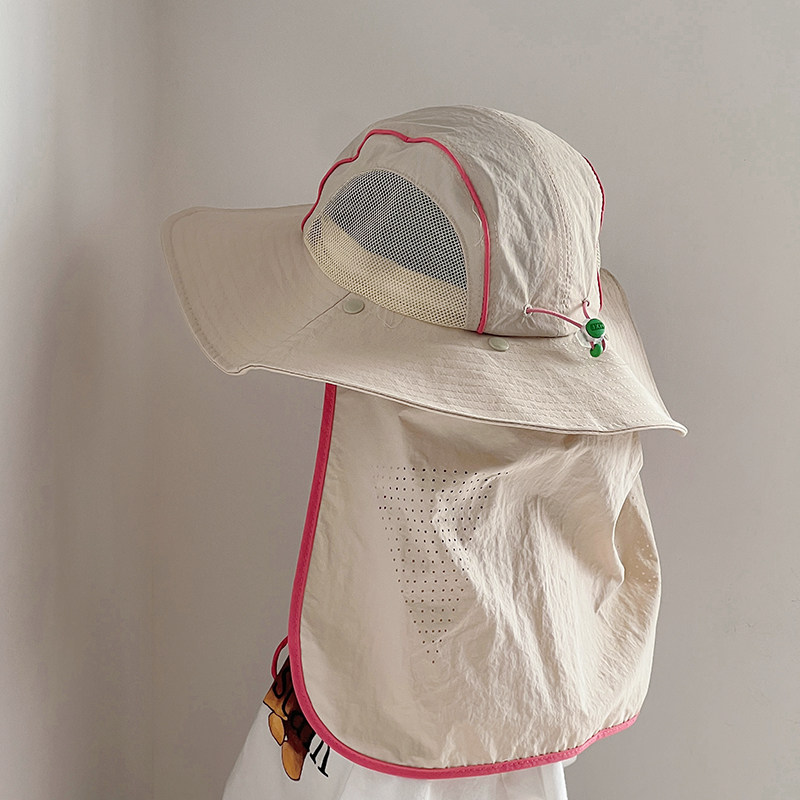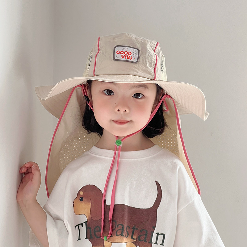 儿童帽子夏季薄款大帽檐速干渔夫披肩帽男女宝宝户外护脖太阳帽春