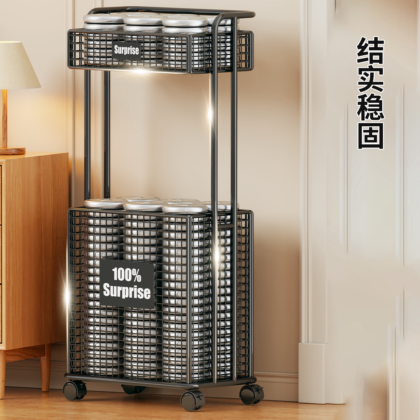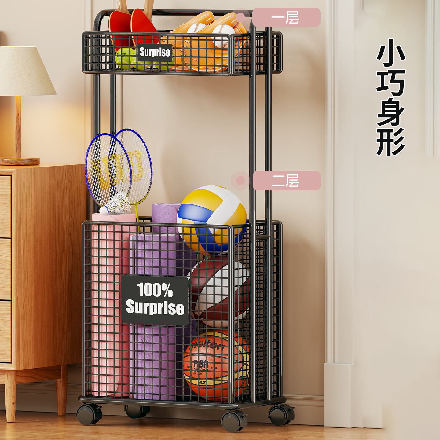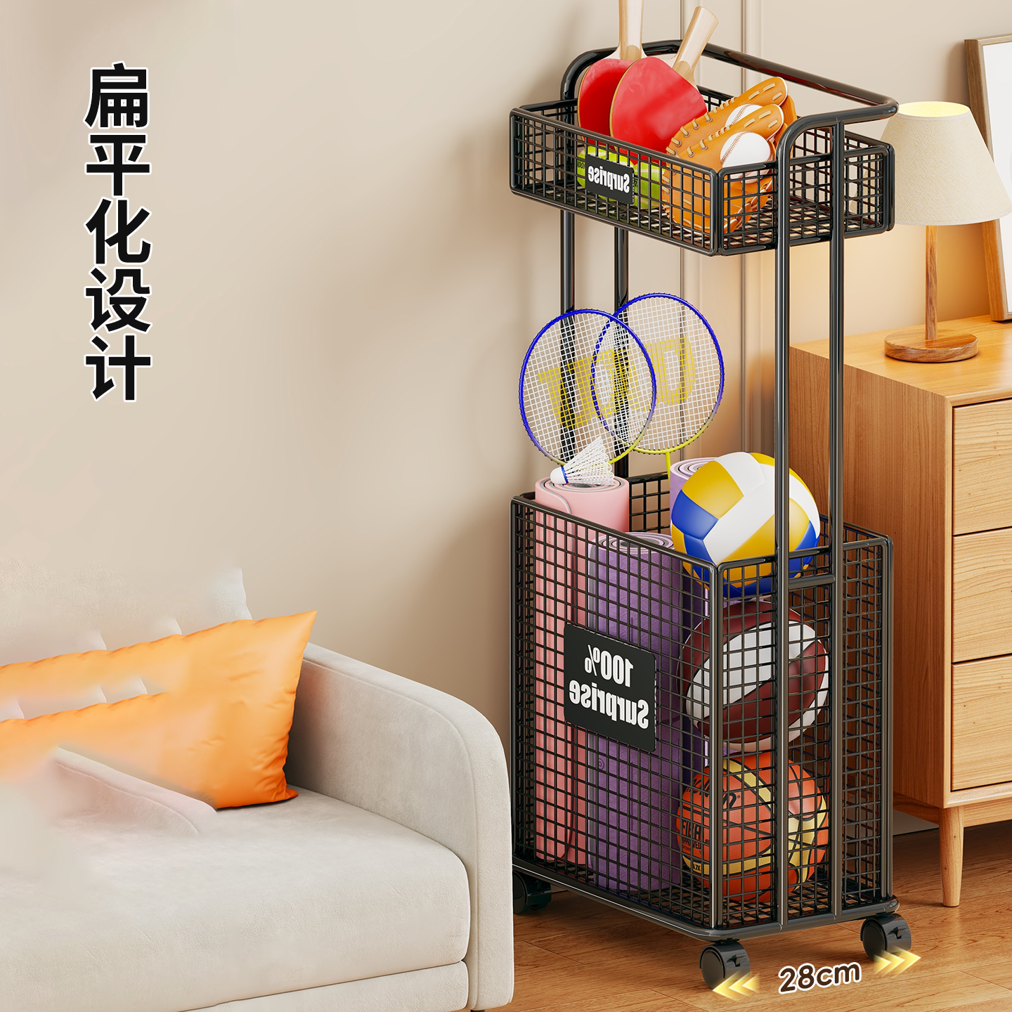 瑜伽垫收纳筐家用运动健身器材箱哑铃篮球羽毛球拍夹缝移动置物架