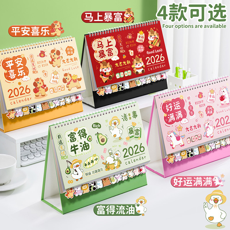 2026年台历创意简约桌面摆件马年可爱自律打卡日历本计划本ins风2025年考研日历商务办公记事月历台历本定制
