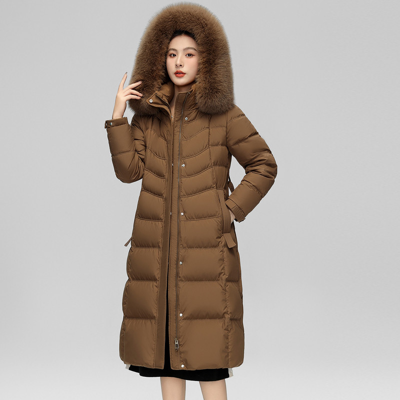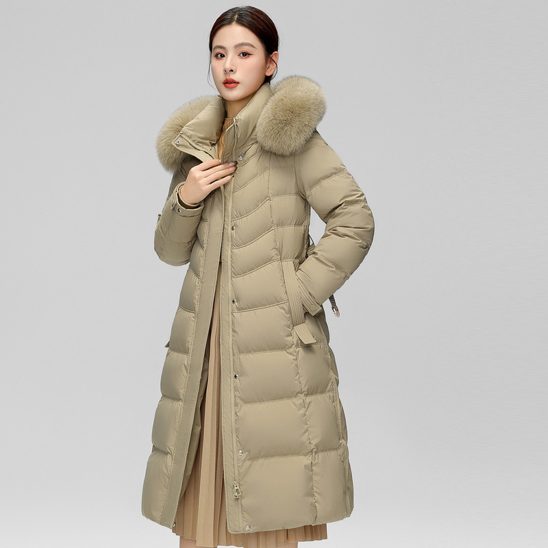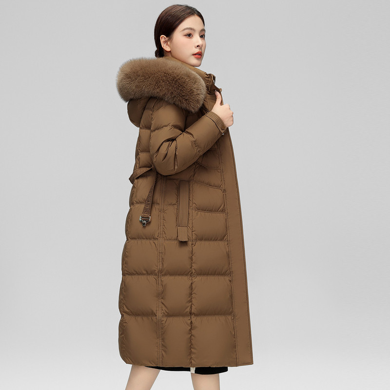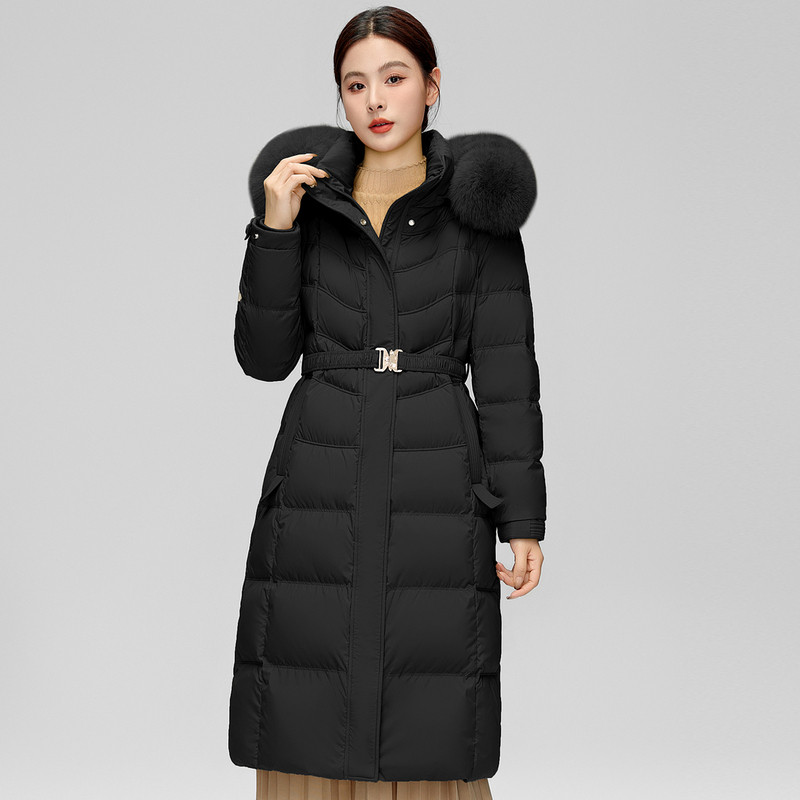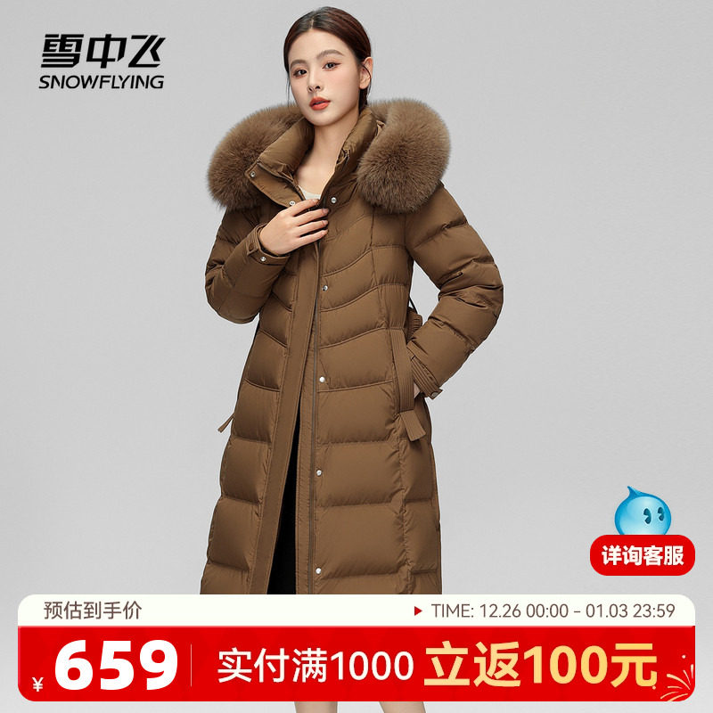 雪中飞2025冬新款女士长款连帽羽绒服狐狸毛领收腰气质显高保暖